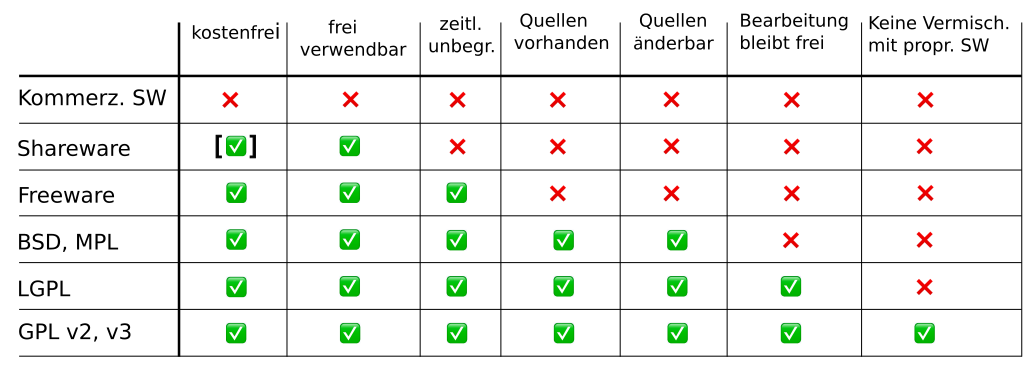 Das IFROSS klassifiziert die Lizenzen wie folgt (schauen Sie sich dort gerne etwas um):